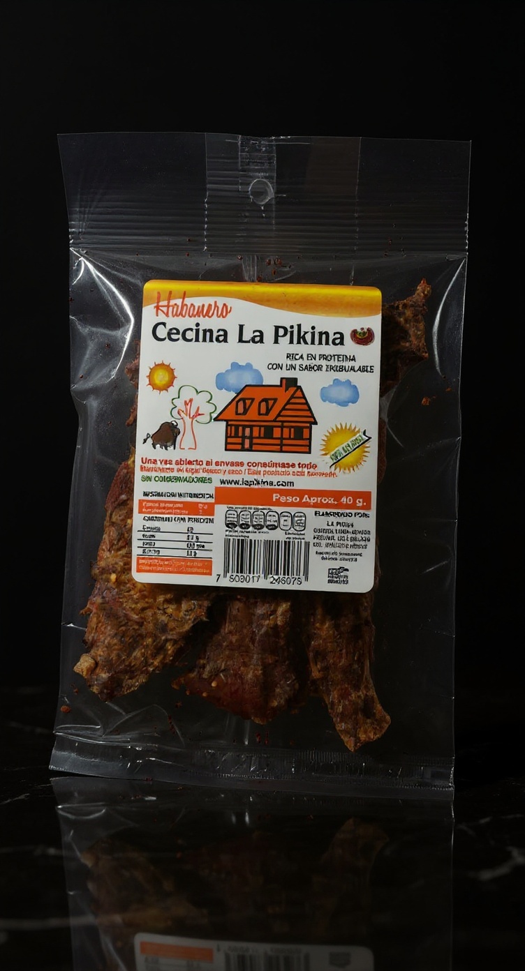 Deliciosa carne seca de res en rebanadas delgadas, con los condimentos y la sal adecuados para una experiencia de sabor incomparable.